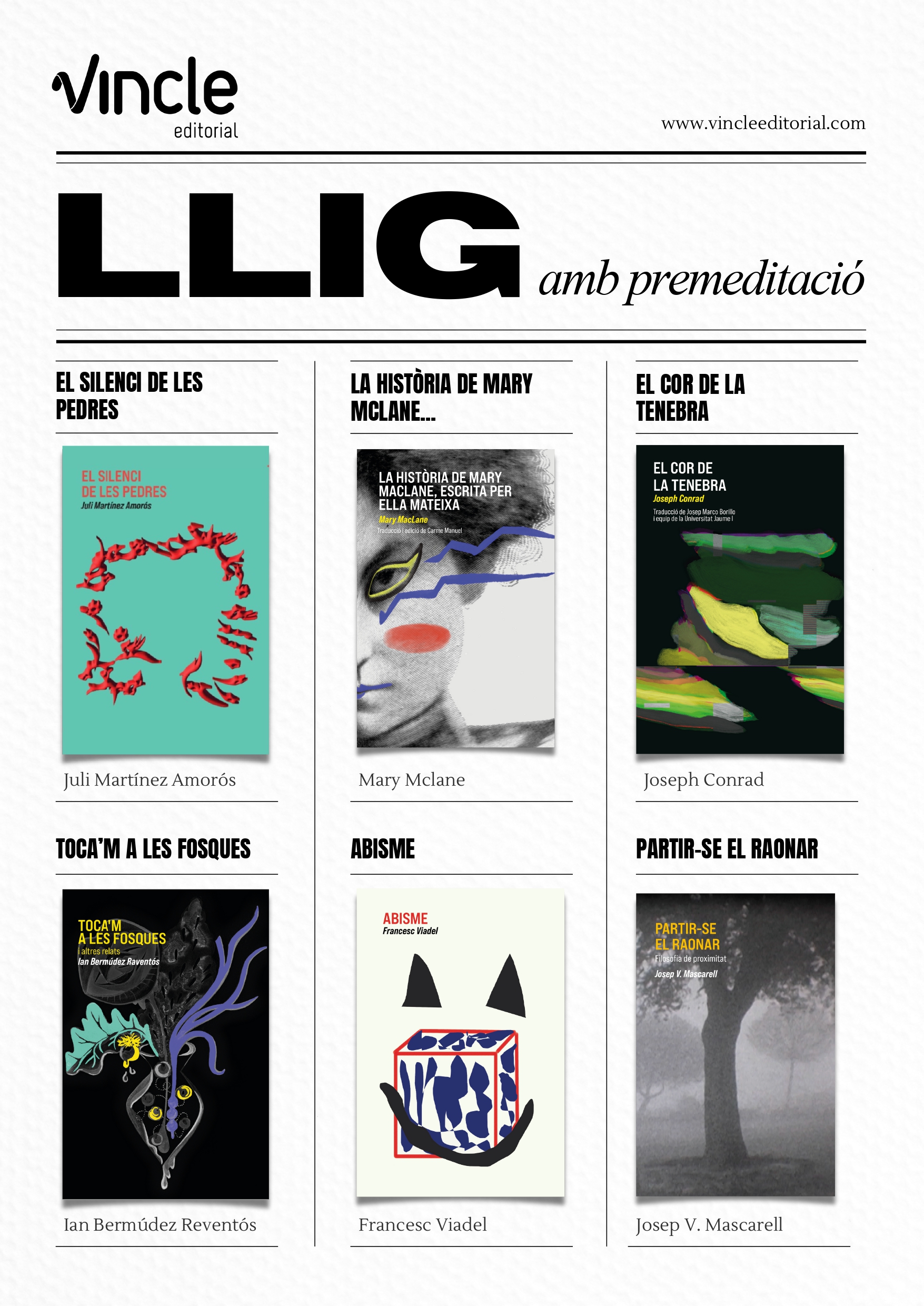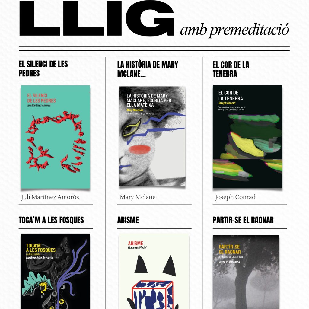 Les sis obres proposades en “LLIG amb premeditació” reflecteixen les nostres línies editorials i ofereixen al lector una gran diversitat temàtica. Aquest títols es poden aconseguir a les principals llibreries i a la nostra web.